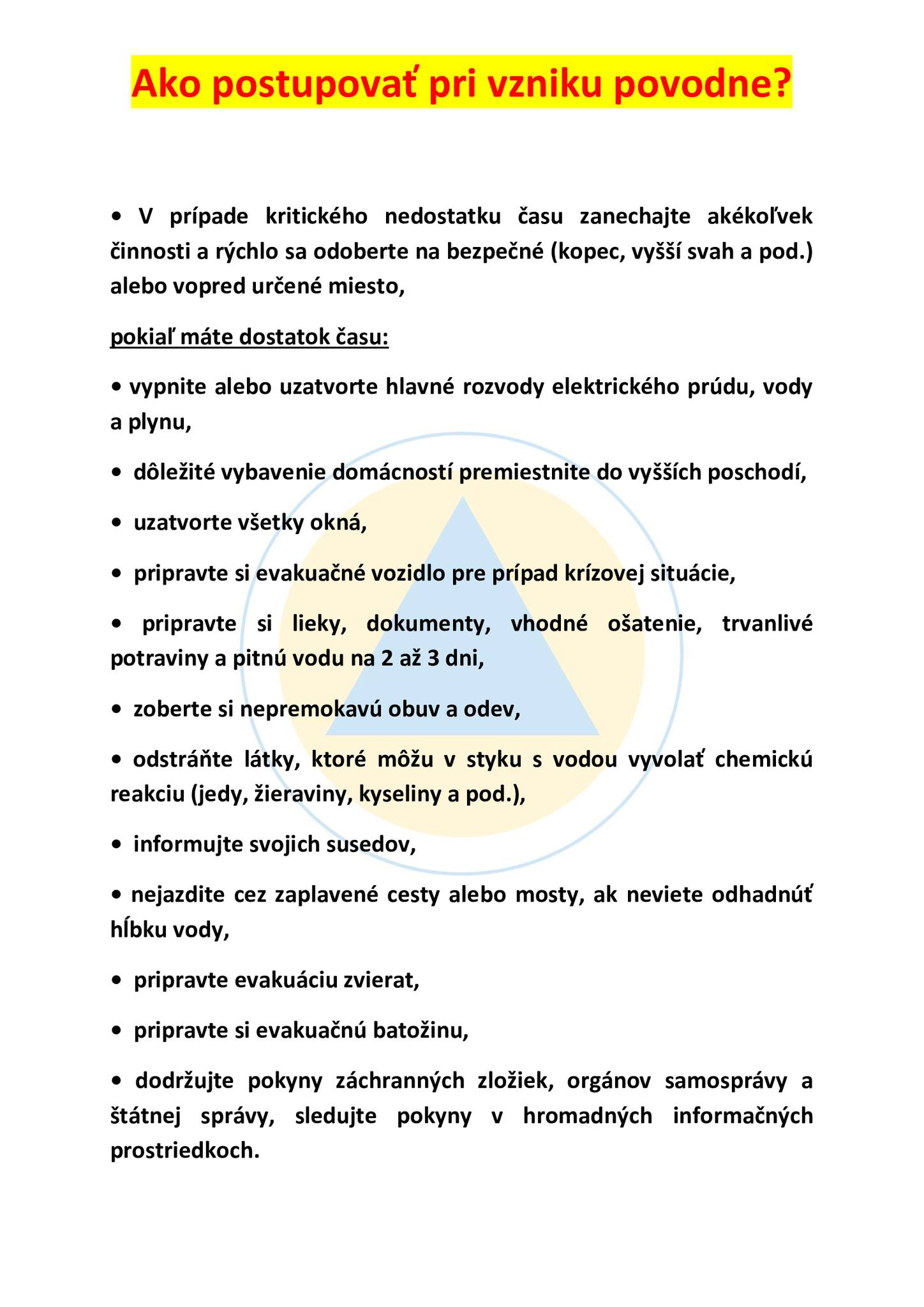 | Názov | Ako postupovať pri vzniku povodne |